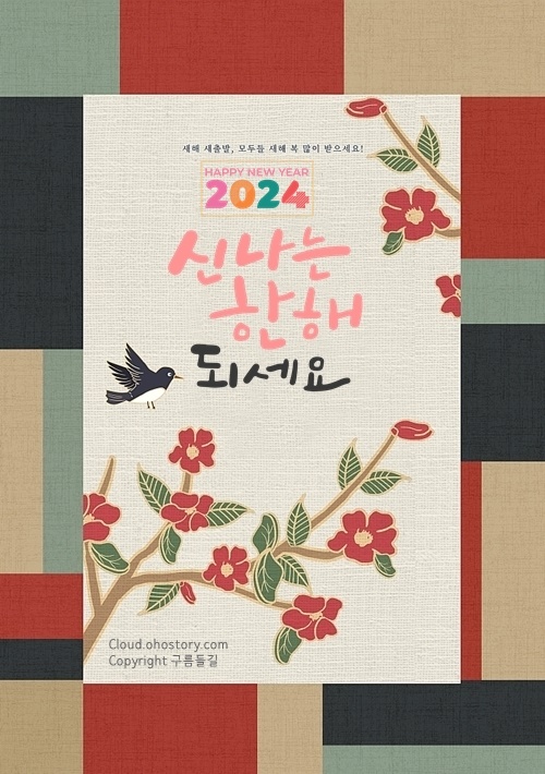 2024년에는 하고자하는 일 모두 성취하시길 바라며 행복과 건강이 항상 가득하기를 기원합니다. 설명절 행복한 시간 즐겁게 보내시고 이제 얼마 남지 않은 겨울 건강 잃지 않도록 코로나 조심하셔야합니다. 새 마음으로 다가오는 봄날을 기다리며 늘 기쁨이 깃들기를 기원합니다.