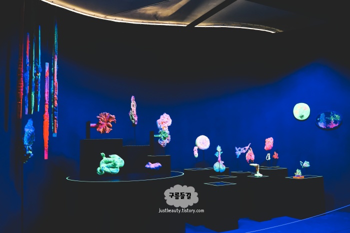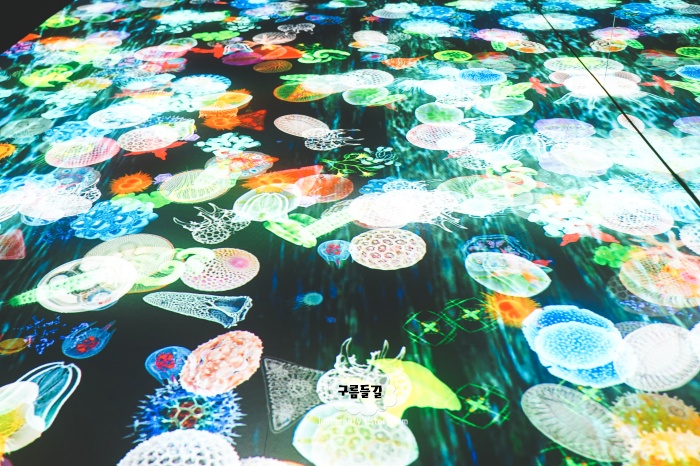 미구엘 슈발리 특별전은 '제주의 바다를 색칠하다'는 디지털 심연으로 2022년 11월 6일까지 국내 최대규모로 열리고 있습니다. 미구엘 슈발리에는 프랑스 미디어아트 거장이라고 합니다. 빛이 신기하기는 하더라구요.