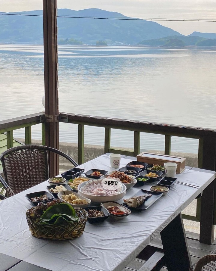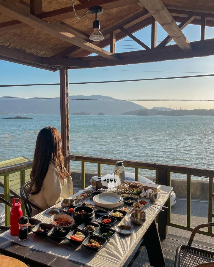 하늘과 바다를 붉게 물들이는 노을이 지는 시간대에 방문하는 것이 최고이고 가성비 넘지는 가격으로 푸짐한 구성의 참숭어회 코스를 맛볼 수 있기에 하동맛집으로도 괜찮겠죠?