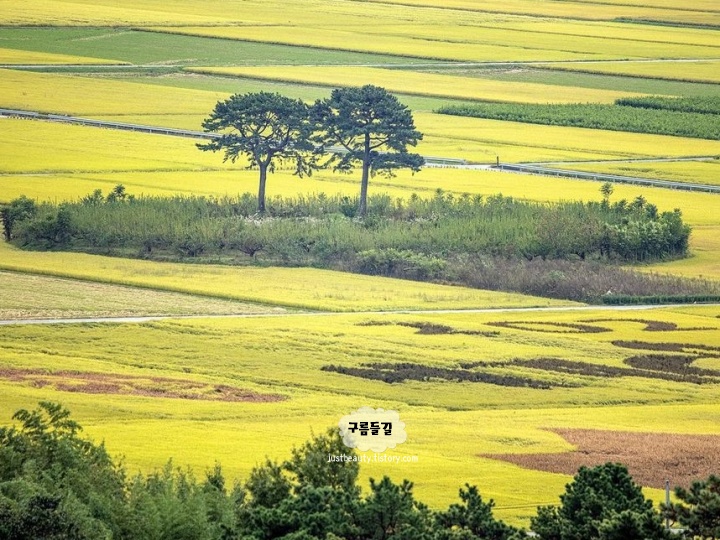 박경리 선생의 소설 ‘토지’의 무대인 악양면 평사리 들판은 가을철 하동 여행 1번지로 손꼽히는 곳이죠. 저도 가을에 다녀왔는데 벼가 수확되기 전 풍경은 가을 하동 가볼만한곳 베스트 10 최고의 절경이라는 생각이 들었습니다.