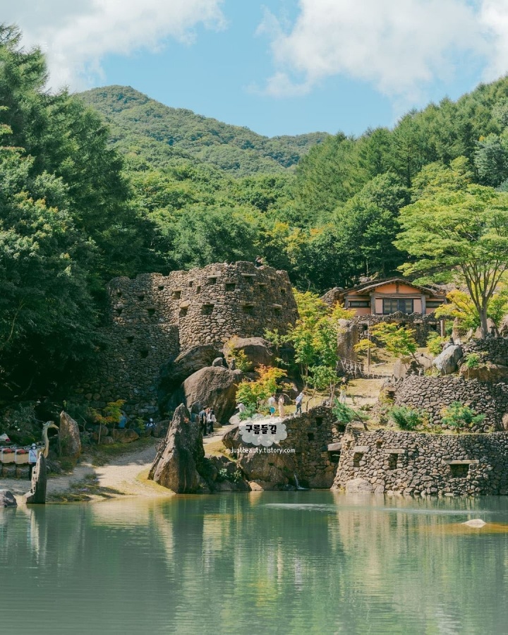 입구에서부터 시원한 계곡 길과 돌담길을 따라 올라가다 보면 1,500여 개의 돌탑과 울창한 숲을 만날 수 있습니다. 돌탑과 울창한 숲과 어우러져 신비롭고 이국적인 정취를 풍겨내는 하동 가볼만한곳으로 제각기 다른 모양의 돌덩이들이 균형을 이뤄 싸인 돌탑들을 보면 감탄사가 절로 나왔고 여기저기 예쁘고 사진 찍기도 좋았습니다.