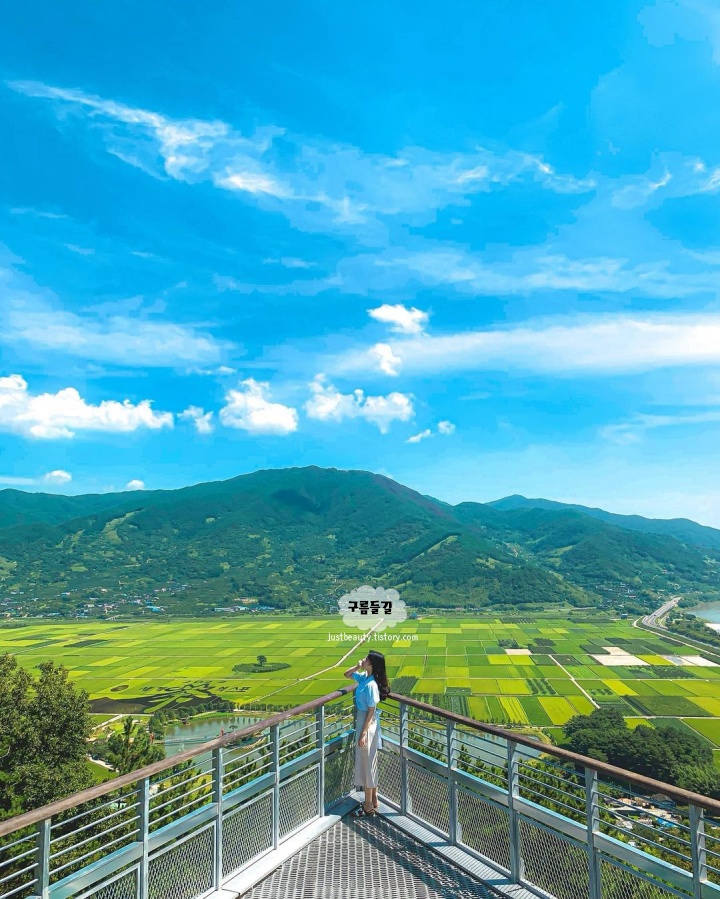 1층과 2층은 평사리 들판뷰였고 3층은 섬진강, 마운틴뷰였습니다. 하동의 절경 섬진강과 악양면 평사리 들판을 한눈에 조망할 수 있는 스타웨이하동은 고소공포증이 있다면 조금 무서울 수 있지만 하동 전경을 담을 수 있는 포토 스팟이라서 저는 하동 필수코스라도 생각합니다.