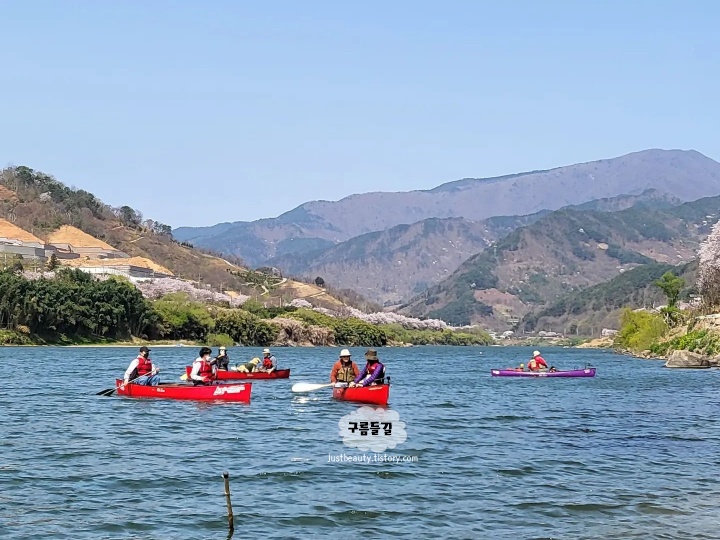 전라도와 경상도를 가로지르는 섬진강줄기 따라 화개장터 옆에 바로 딱 자리잡고 있는 섬진강 카누는 1시간 정도 원점 코스와 3시간 정도 투어코스가 있습니다. 하동 가볼만한곳 베스트 10 특별한 경험을 하고 싶은 분들께 추천하고 싶고 아이와 함께하는 가족여행 코스로도 이색적인 추억이 될 것 같습니다.