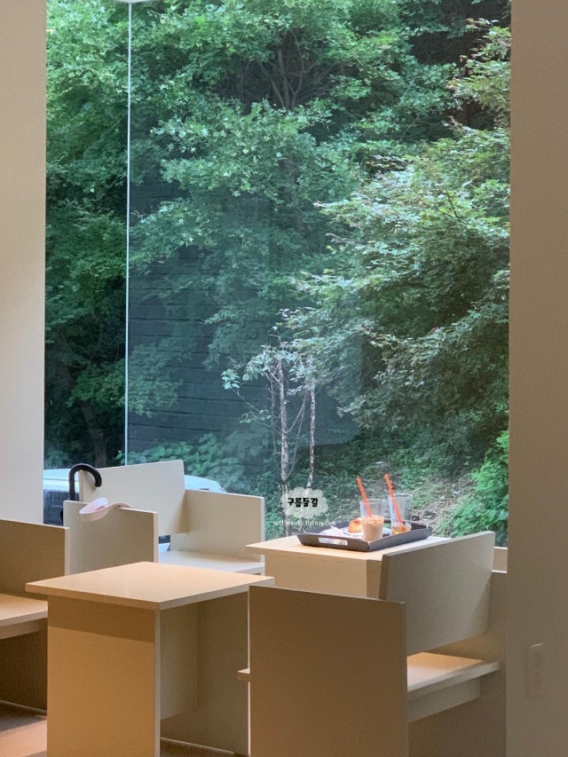 그냥 앉아만 있어도 힐링이 될것만 같은 공간입니다. 잠시 쉼표가 필요한 시점이라면 통창 너머 보이는 초록초록 청량한 뷰를 바라보며 시그니처 디저트인 치즈케이크와 커피 한잔과 함께 지친 일상에 활력을 넣어보세요.