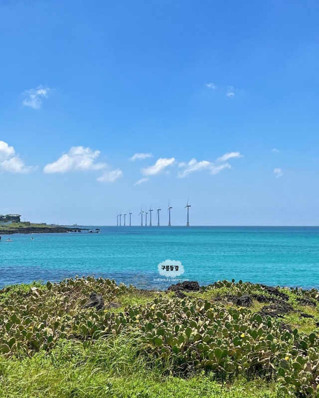 멕시코가 원산지인 선인장이 난류를 타고 열대지방으로부터 밀려와 야생하게 된 것으로 추정되고 있습니다. 9월 제주도 여행코스 2박3일 무조건 추천하는데 제가 본 제주 중 최고 아름다운 풍경이었습니다. 월령포구 주변 주차하고 올레길14코스 따라 이동하면 됩니다.