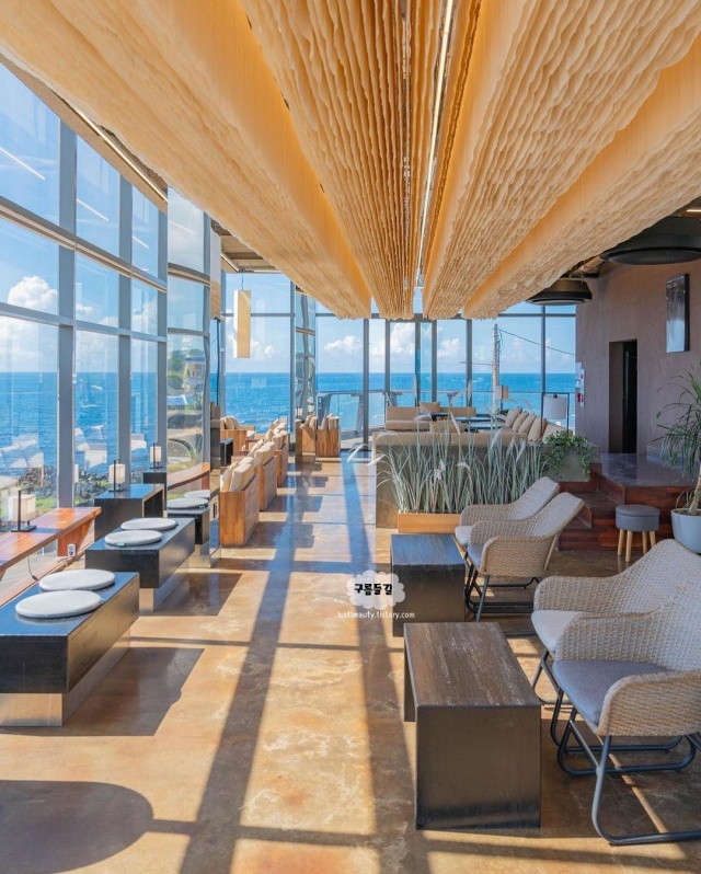 멋진 오션뷰를 감상할수있는 카페 아오오는 건물이 참 예쁘고 특별하다 생각했더니 "건축문화대상"에서 상을받은 건물이더라구요. 멋진 건물이 통창으로 되어있어서 어디에 앉아도 예쁨가득한 오션뷰를 즐길수있어요