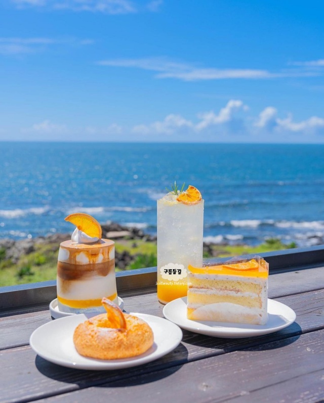 규모가 엄청 큰 카페인데도 곳곳에 적절한 소품을 잘 배치해서 지루할 틈없이 구경했답니다. 뭔가 새로운 디저트와 음료로 기분전환을 하고 싶거나 포토스팟이 많은 곳을 좋아하는 사람들에게는 중문 가볼만한곳 10곳 여행 필수 코스입니다.