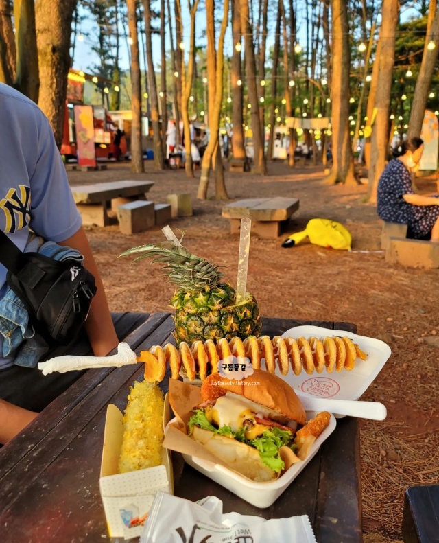 숲속에 야시장이 있다니 피톤치드 샤워도 하고 맛있는 야시장 먹거리도 가득한 여기는 제주시내에서 가까운 수목원길 야시장입니다. 공항에서 20분도 안 걸리고 맛있는 먹거리가 엄청 많고 푸드트럭만해도 20여개가 넘는데 거기에다가 기념품도 많은 제주도 9월에 가볼만한곳입니다.