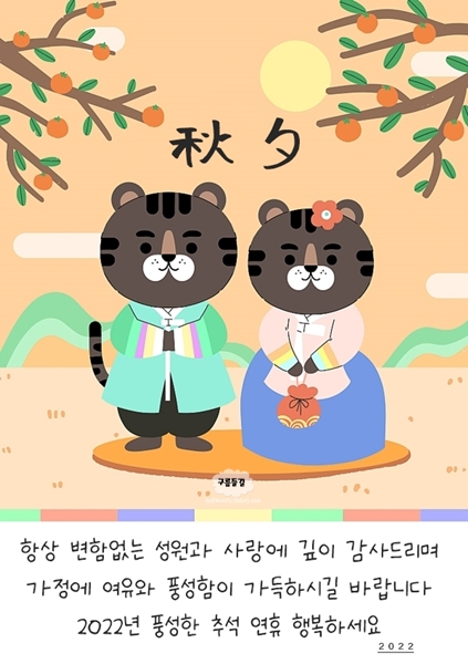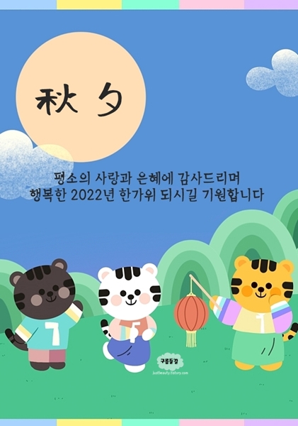 이번 2022년 추석 인사말 이미지 모음집은 올해가 호랑이 해인만큼 호랑이 이미지 일러스트로 추석 이미지 모음을 직접 만들어보았습니다. 2022년에 맞게 추석 인사말 모음집을 만들었고 이미지도 하나하나 신경썼으니 추석 인사말 전할 때 참고해보시기 바랍니다.