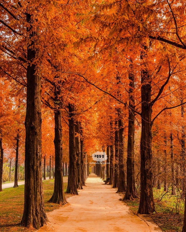 유료화 되어서 입장료 3천원이 있습니다. 대신 가는 길이 정비되고 더 좋아졌습니다. 주황빛으로 물들어가는 메타세콰이어길을 낭만적으로 걸어볼 수 있습니다.