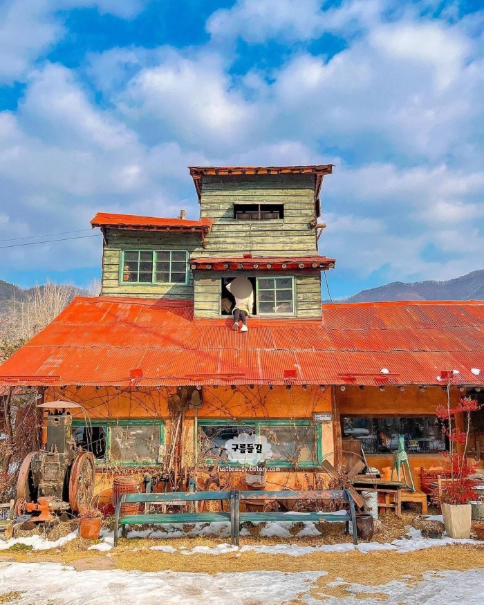 하울의 움직이는 성을 연상케 하는 전주 '색장정미소'는 이른바 '지브리 감성' 카페로 알려졌습니다. 100년 된 정미소를 보수하고 보존한 곳으로 난로, 고가구, 영화 포스터 등 쉬이 볼 수 없는 골동품들로 가득했습니다. 2층 다락방에 앉아 있으면 잠시 과거로 시간여행 하는 느낌도 들었습니다.