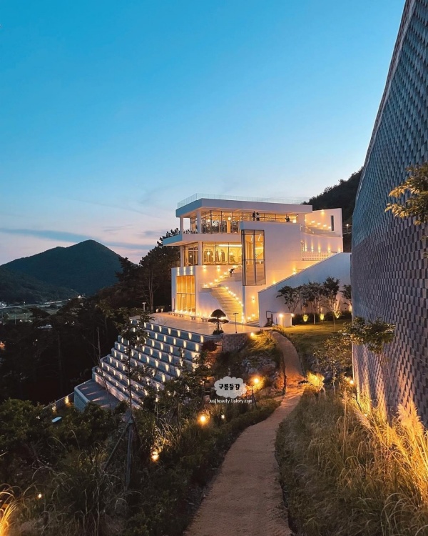 여수에 잇는 식물원 느낌의 카페로 맨 아래층은 동백나무 길이 있고 주문하는 층은 중정 정원 느낌이라 무척이나 인상 깊었습니다. 3층도 식물로 루프탑도 작은 정원이었고 전체적으로 앞 경도 오션뷰입니다. 해 지는 방향이라 일몰도 멋진 카페였습니다.