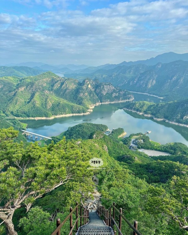 월악산 등산은 아름다운 단양 충주호 뷰가 한눈에 들어오는 곳입니다. 초반에는 계단이 많고 경사가 있지만 들머리에서 15분 정도만 오르면 충주호 뷰가 터지기 시작합니다.