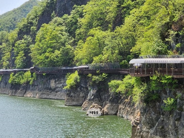 한걸음 떼고 뒤돌고 한걸음 떼고 또 뒤돌고를 반복할 정도로 충주호와 구담봉, 기암괴석의 모습이 진짜 말도 안 되게 너무 예뻤던 단양 가볼만한곳 베스트 10으로 소요시간은 2시간 30분 왕복 4.4km였습니다.