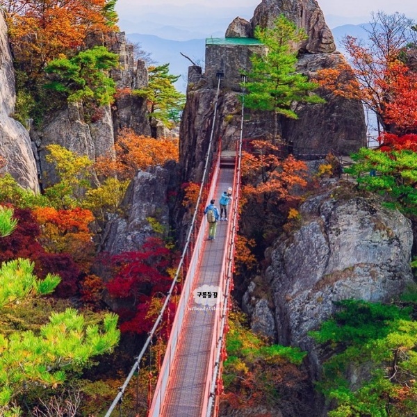 알록달록 가을이 가득한 대둔산도립공원은 가을 전북 가볼만한곳 베스트 10 내장산과 함께 대표적인 명소입니다. 봉우리마다 한 폭의 산수화로 장관을 뽐내는 빼곡한 숲이 첩첩으로 쌓여 있는 대둔산은 사계가 모두 아름답기로 유명합니다. 대둔산 은 산세가 험하고 웅장하며, 폭포와 계곡이 아름다운 산으로 금강구름다리, 삼선계단, 케이블카 등이 있어 볼거리가 풍부한 완주 가볼만한곳 베스트 10입니다.