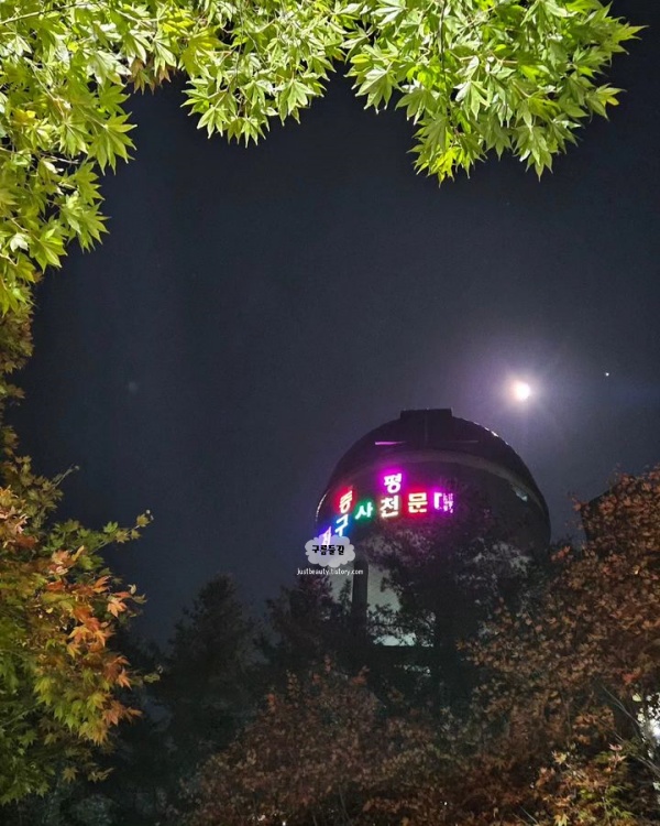 좌구산은 주변에 불빛이 없어 맑고 깨끗한 밤하늘에서 별이 쏟아지는 낭만적인 곳으로 국내에서 가장 큰 356㎜ 굴절망원경이 설치돼 있어 작은 망원경으로 볼 수 없는 다양한 천체의 모습을 관찰하기 좋습니다. 여름철에는 토성과 목성 등을 찾아볼 수 있다고 하니 참고하세요.