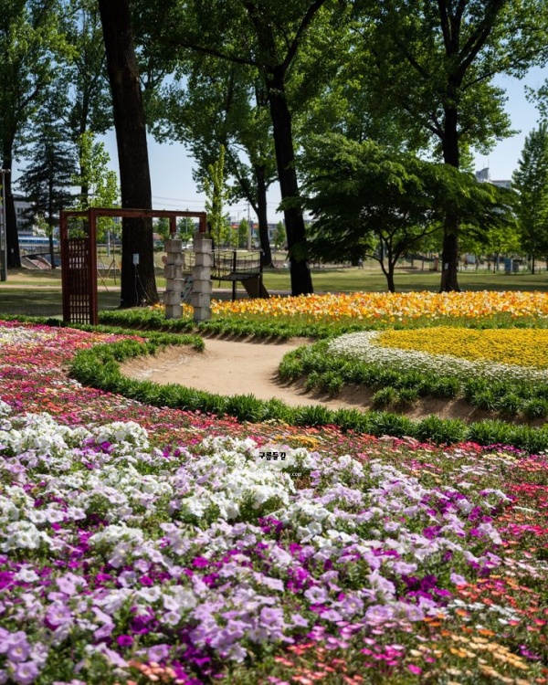 증평 가볼만한곳 베스트 10으로 늘 사랑받는 장소입니다. 봄이면 아름답게 피어나는 알록달록 꽃밭 속에서 여유로운 시간을 만끽해 볼 수 있고 그물막 쉼터, 흔들의자 등 편의시설과 포토존 등이 있는 만남의 공간도 다양했습니다. 계절마다 다양한 꽃이 피니 언제라도 방문해보세요