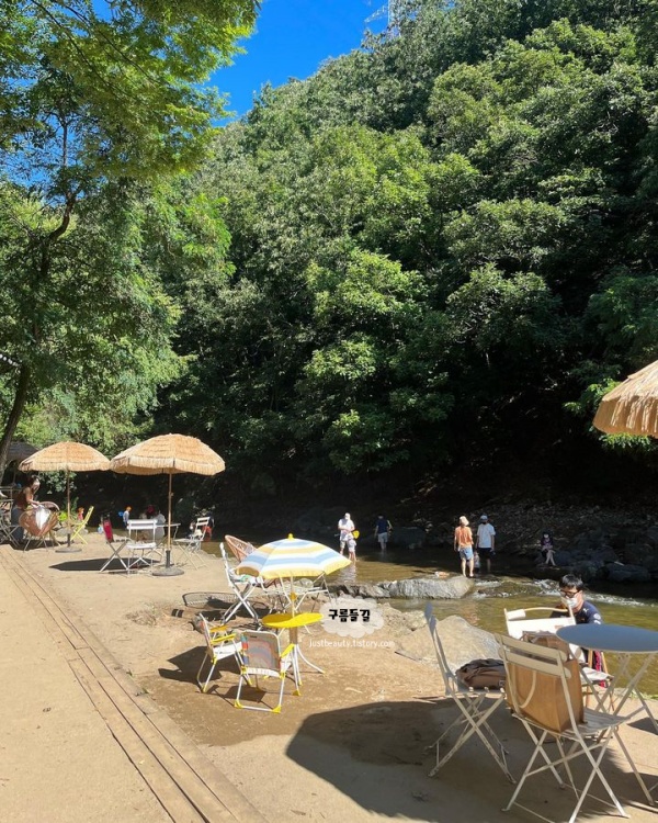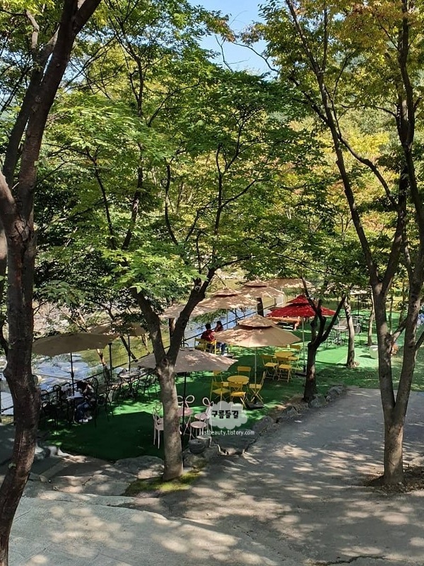 계곡에 발담그고 커피 마실 수 있는 곳이라서 경기도 광주 여름에 갈만한 카페입니다. 남한산성에 자리한 대형카페로 계곡 옆에 있어서 시원하게 즐길 수 있습니다. 물살이 약해서 아이들도 물놀이 하기 좋아보였으나 보호자 동행하에 안전하게 물놀이를 하면 좋을 것 같습니다.