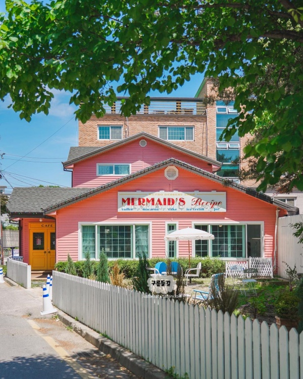 하이틴 드라마 속 같은 컨셉의 특별한 경기도 광주 카페 추천 머메이드 레시피입니다. 이미 모르는사람 빼고 다 아는 경기도 광주 카페로 외관부터 내부까지 하이틴 컨셉 충실하구 넘 예뻤습니다. 직원들도 유니폼으로 핑크색 메이드복을 입고 계서서 너무 사랑스러웠어요.