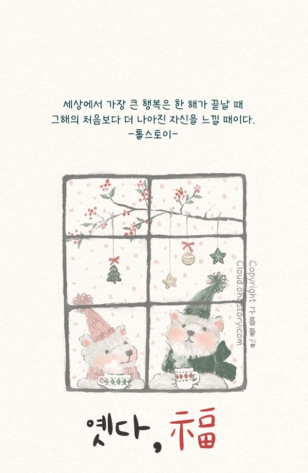 날씨는 춥지만 밝고 희망한 마음으로 새해를 맞이하시길 바라며 올 한해 하고자 하시는 일 모두 이루는 성공적인 한 해가 되기를 응원합니다. 즐거운 설 명절 되시고 복 많이 받으세요.