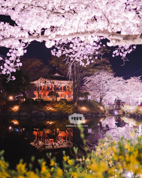 경북 김천에 있는 ’연화지‘ 저수지에 비친 모습이 정말 환상입니다. 김천역에서 버스 15분이고 해변에서 캥거루도 볼 수 있습니다. 3~4월 벚꽃시즌에는 임시주차장 운영해서 주차도 괜찮은 편입니다.