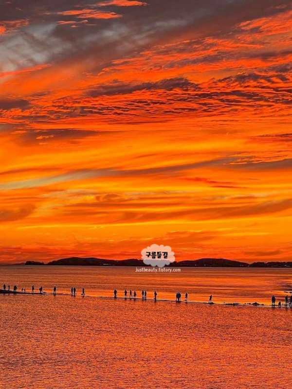 서해의 일몰은 정말로 장관이죠. 구봉도를 배경으로 떨어지는 해는 마치 한 폭의 그림 같아 방문객들에게 잊지 못할 경험을 선사하고 하늘이 점차 물들어가는 모습과 함께 비치는 윤슬까지, 모든 것이 완벽한 자연의 아름다움을 보여주는 대부도 갈만한곳입니다.