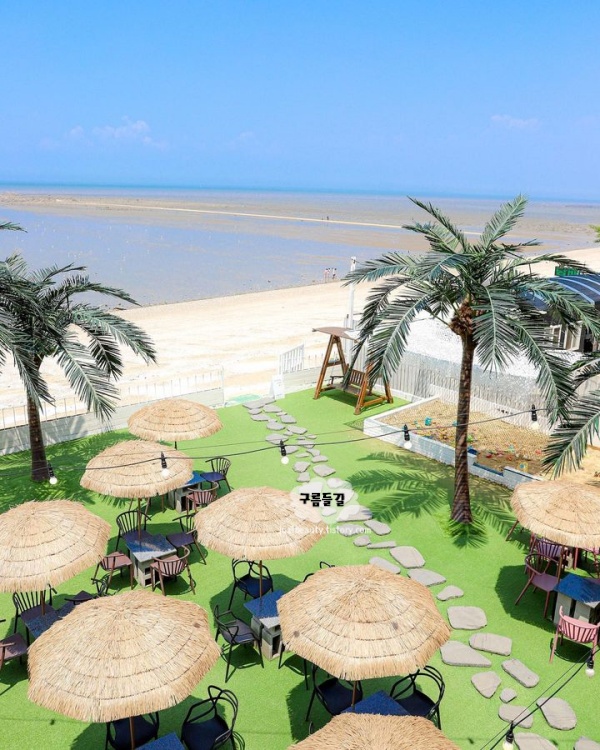 해외 부럽지 않은 여름나기 가능한 카페아셀은 해외여행을 못갔더라도 오션뷰와 야자수까지 휴양지 느낌 제대로 느낄 수 있는 안산 갈만한곳입니다.