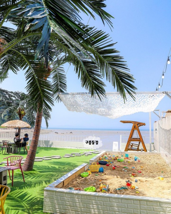 아이들 놀 수 있는 모래놀이터공간이 있고 바다 바로앞이라 언제든지 달려갈 수 있습니다. 야자수와 포토존이 있어 사진찍기 좋았고 1층도 좋지만 2층은 조용하고 온전히 바다멍 즐길 수 있습니다.