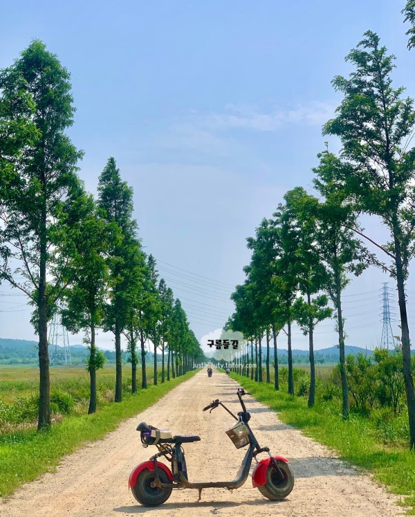 전동바이크를 타고 대부향기테마파크의 푸르른 들판을 달리면 시원한 바람에 더위도 잠시 잊을 수 있습니다. 큰 길을 따라서 가면 1시간 대여로 충분히 다 둘러볼 수 있습니다. 중간에 있는 평상에서 잠시 쉬어가도 좋습니다.