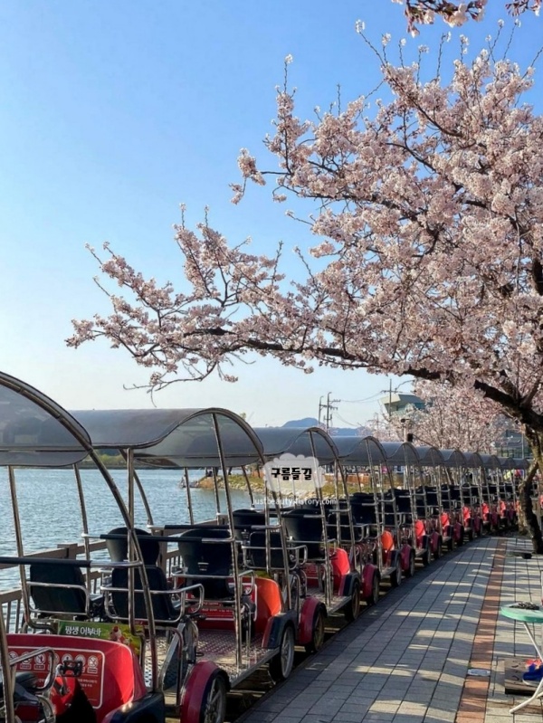 경기도 의왕에 위치한 레일바이크는 왕송호수를 끼고 있는 환상적인 경로로, 봄이 되면 화려한 벚꽃길이 펼쳐지는 핫플레이스로 변신합니다.