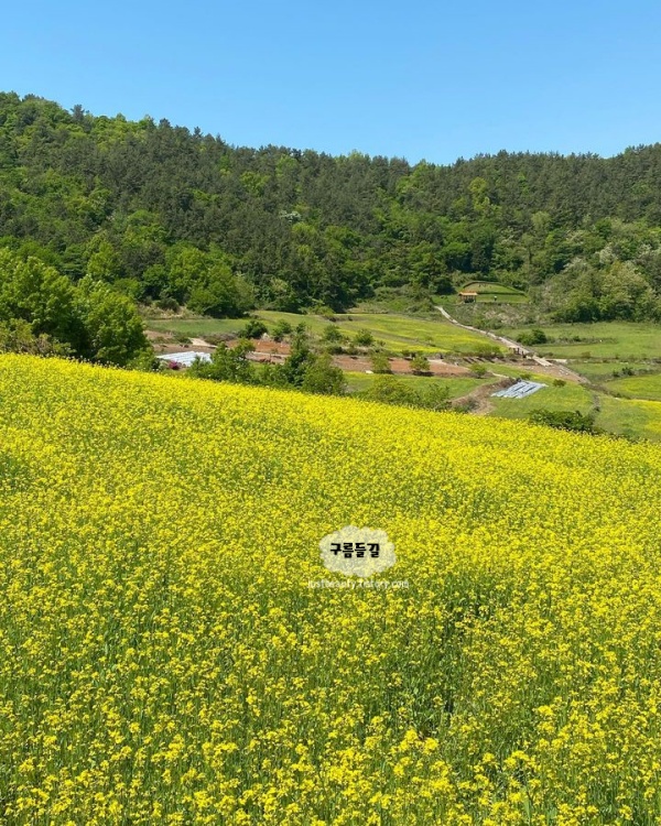 가장 아름다운 농어촌으로 선정되기도 했을만큼 유채꽃밭은 산책하기 좋도록 길이 잘 다듬어져 있어 산책을 즐기기 좋으며 쉬어갈 정자도 있어서 운치를 더해주는 이곳 봄 여행지 베스트 50입니다.