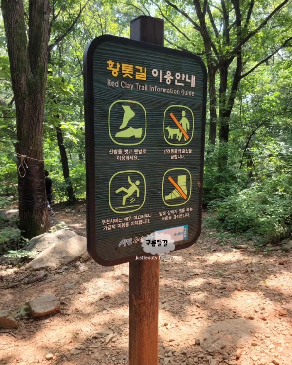 경기도 맨발 걷기 좋은 길 군포 수리산 황토길은 황토의 촉촉하고 부드러운 느낌을 발로 직접 느낄 수 있습니다. 황토길은 약 1시간에서 1시간 반 정도 소요되며, 길 중간중간에 세족장이 있어 걷기 후 발을 깨끗하게 씻을 수 있어 매우 편리한 서울근교 맨발 걷기 장소입니다.