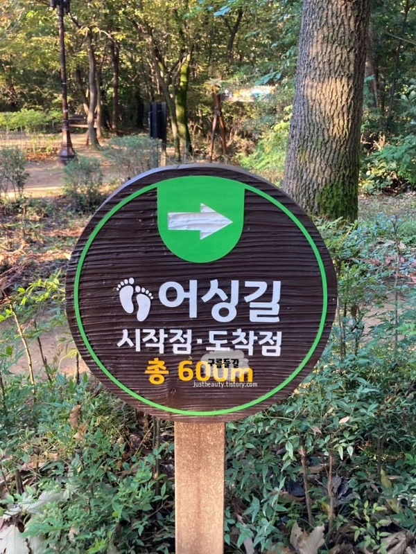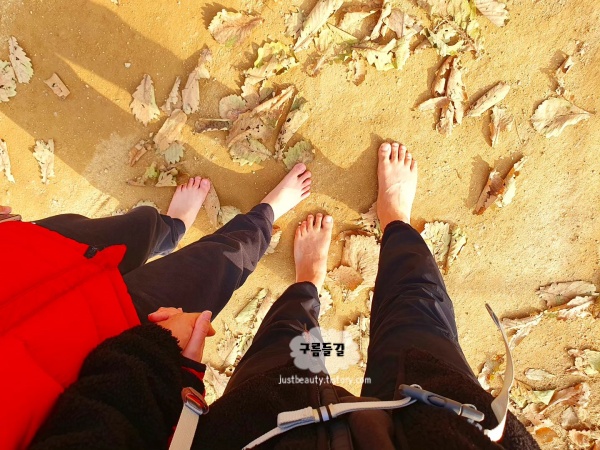 맨발 산책로는 약 1시간에서 1시간 반 정도 소요되며, 중간중간에 쉼터와 간이 세족장이 있어 걷다가 쉬거나 발을 씻기에 편리합니다. 마사토 길이라서 발바닥이 자극되어 건강에 좋고, 피톤치드 가득한 숲 속 공기를 마시며 힐링할 수 있는 경기도 걷기 좋은곳입니다.