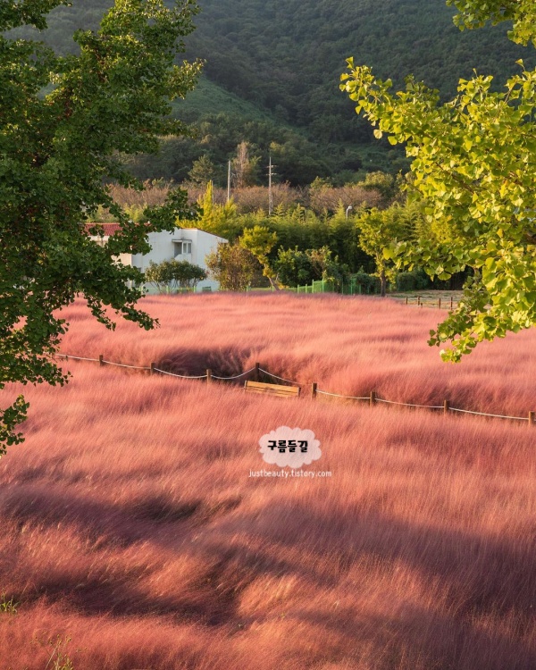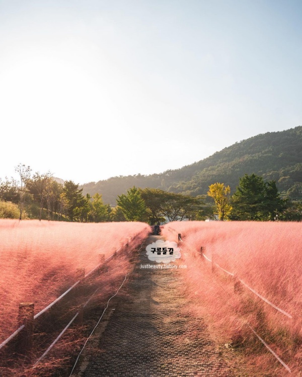 경상도 가을 여행지 추천 플라워가든은 핑크뮬리와 메밀꽃이 함께 어우러져 있고 꽃밭 사이에 산책로가 잘 정비되어 있어 천천히 둘러보기에 좋으며, 바다가 보이는 곳이라 경치가 최고죠. 그늘이 많지 않으므로 양산과 선글라스를 준비해 가면 좋습니다.