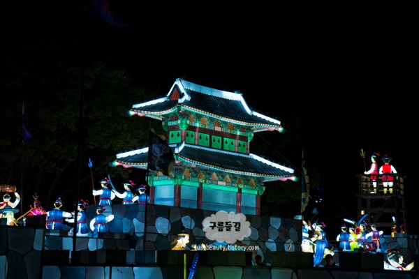 주차는 행사장 인근의 임시 주차장을 이용할 수 있는데, 주말에는 혼잡하므로 셔틀버스를 타는 것을 추천하고, 행사장 주변에는 푸드트럭과 다양한 먹거리 부스가 하루 종일 놀기에도 좋습니다. 저녁 시간에는 드론쇼와 불꽃놀이가 펼쳐져 유등과 함께 더 멋진 야경을 볼 수 있으니 일몰 무렵 방문을 권하고 싶습니다.