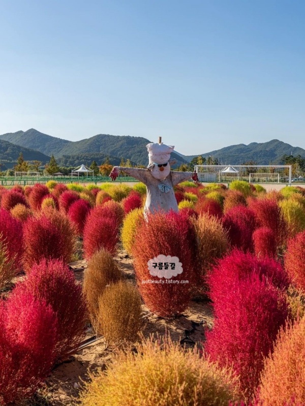 억새밭과 댑싸리 군락은 가을바람에 흔들리며 세상을 아름답게 만들고 산책로도 잘 정비되어 있어 아이와 꽃구경하기도 문제없습니다. 공원 주변에서 간단한 음식을 구매할 수도 있어 가을 나들이 장소로 추천합니다.