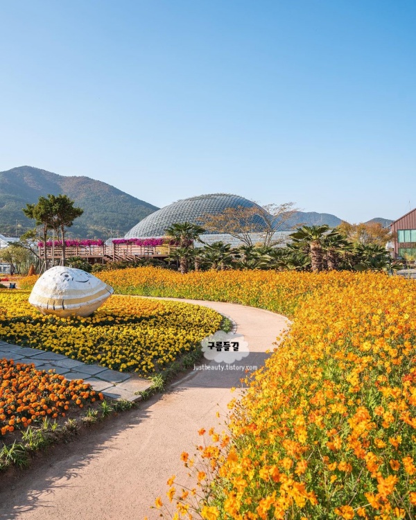 가족이나 친구들과 함께 천천히 산책하며 가을 햇살 아래 펼쳐진 꽃밭은 눈이 즐거울 뿐만 아니라 마음까지 편안하고 힐링할 수 있는 가을 경남 가볼만한곳 베스트 10입니다. 입구 쪽에는 화장실도 있어 방문할 때 불편한 점이 없습니다.