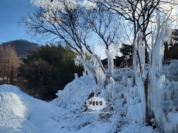 밀양 얼음골폭포관광농원은 겨울철에도 다양한 즐길 거리가 있는데 눈썰매장과 빙어 잡기 체험이에요. 겨울 풍경이 아름다워 사진 촬영에도 좋습니다.