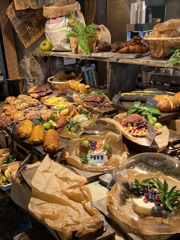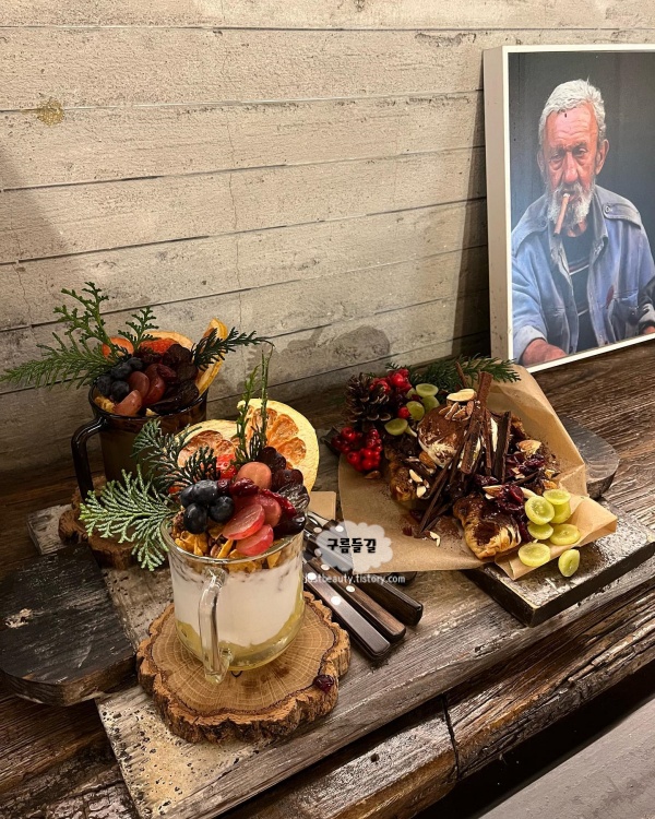 가게 전체가 사장님의 취향과 정성으로 가득한 바이사이드는 확실한 컨셉과 멋진 인테리어가 돋보이는 통영 이쁜 카페 추천입니다. 웅장하고 세련된 분위기 속에서 디저트와 음료를 즐길 수 있으며, 디저트의 플레이팅과 음료의 데코까지 하나하나 정성이 묻어 있었습니다. 땅콩버터빵은 빠르게 소진될 만큼 인기 메뉴로, 넉넉한 토핑이 더해져 만족도가 높았습니다.