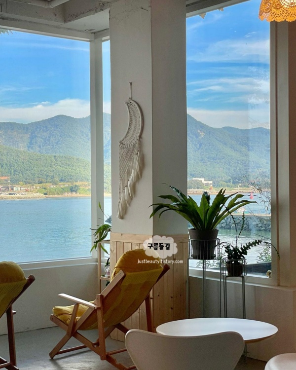 넓고 편안한 좌석과 깔끔한 인테리어 덕분에 바다를 보며 힐링하기에 좋았고 일몰 때의 뷰는 상상만으로도 황홀할 듯합니다. 이야기 나누기에 좋은 깔끔한 공간과 노트북 작업에 적합한 1층과 2층의 여유로운 분위기도 인상적이었습니다. 정말 "왜 이제야 왔을까"라는 생각이 들 정도로 만족스러운 시간이었고, 다시 방문하고 싶은 곳으로 통영 카페 강력 추천합니다.