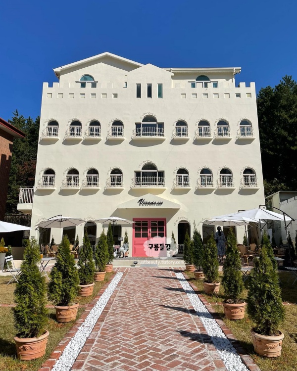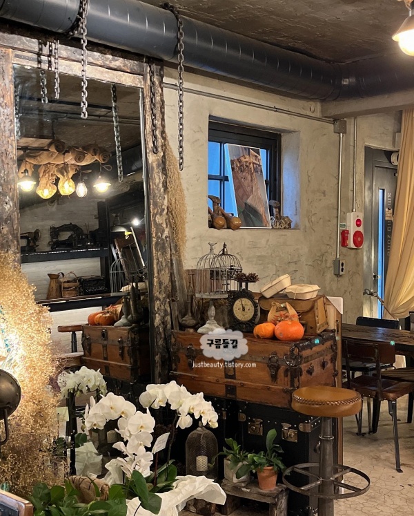 처음 도착했을 때 유럽 호텔 같은 멋진 외관이 인상적이었습니다. 2층은 양식점, 3층은 카페로 나뉘어 있으며, 반려동물 동반 시 케이지나 안고 들어가는 규칙이 있었습니다. 내부는 샹들리아트리를 포함한 멋진 소품들로 가득했고, 크리스마스 분위기가 여전히 느껴졌습니다.