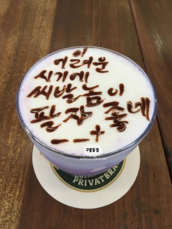 통영에서 특별한 분위기를 느낄 수 있는 카페 울라봉은 힙한 감성과 맛있는 커피로 가득한 통영 카페 추천입니다. 대표 메뉴인 쌍욕라떼는 강렬한 이름과 달리 부드럽고 진한 커피 맛으로 놀랐습니다. 사장님의 나긋나긋하고 친절한 반전 매력도 카페의 독특함입니다.