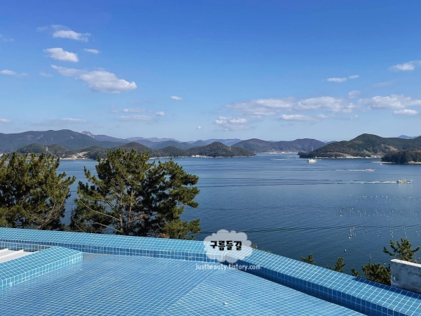 통영 도남관광단지 근처에 위치한 클라우드힐 카페는 탁 트인 한산도 바다뷰를 감상할 수 있는 진정한 뷰 맛집, 통영 오션뷰 카페 추천입니다. 피곤한 여행 중 코코아와 크림이 듬뿍 올라간 클라우드 아인슈페너로 달달한 당충전을 할 수 있었고, 커피도 훌륭한 맛을 자랑했습니다.