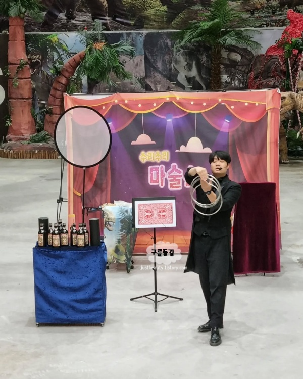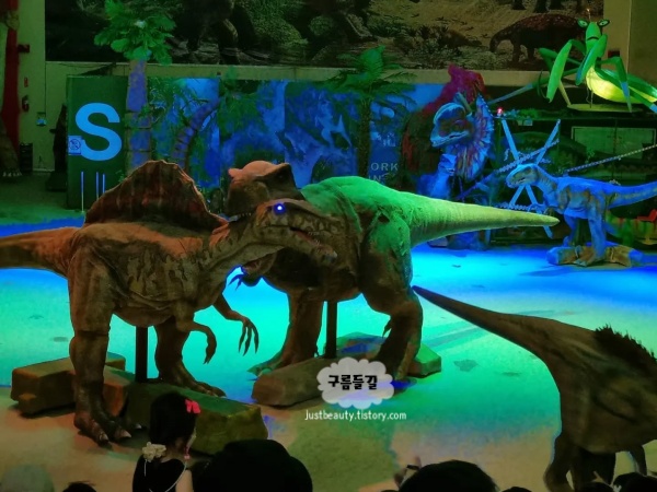 공룡월드는 아산 퍼스트빌리지 안에 위치한 실내 체험 공간으로, 움직이는 공룡과 마술쇼 등 다양한 프로그램이 준비되어 있습니다. 크고 실감 나는 공룡 모형들과 함께 사진도 찍고, 아이들이 직접 만지고 체험하며 즐길 수 있는 기회가 많았습니다. 에어바운스, 색칠 공부 등 놀이 공간도 다양해 하루 종일 신나게 놀기에 충분한 아산 아이랑 실내 가볼만한곳 베스트 10곳이었습니다.