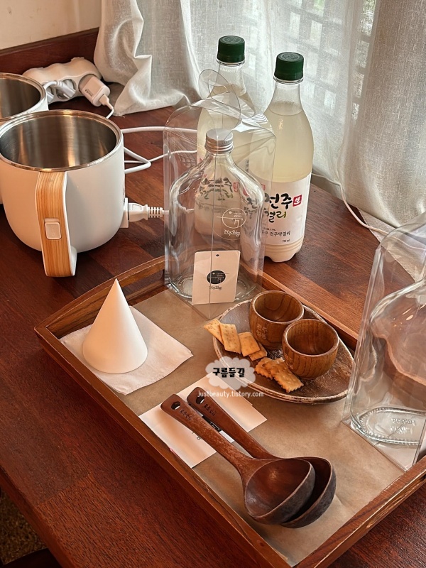 체험은 약 1시간 코스로 간단하면서도 알차게 진행되었습니다. 모주를 만들며 전주의 음식 문화를 몸소 느낄 수 있었고, 체험 후 완성된 모주를 저녁에 다시 맛보는 재미도 있었습니다. 직원분들이 친절하고 세심하게 설명해 주셔서 더욱 즐겁게 시간을 보낼 수 있었습니다. 전주 여행에서 흔히 하는 밥이나 카페 방문 대신 특별한 경험을 하고 싶다면, 전주일몽에서의 모주 만들기 체험은 훌륭한 선택이지 않을까요?
