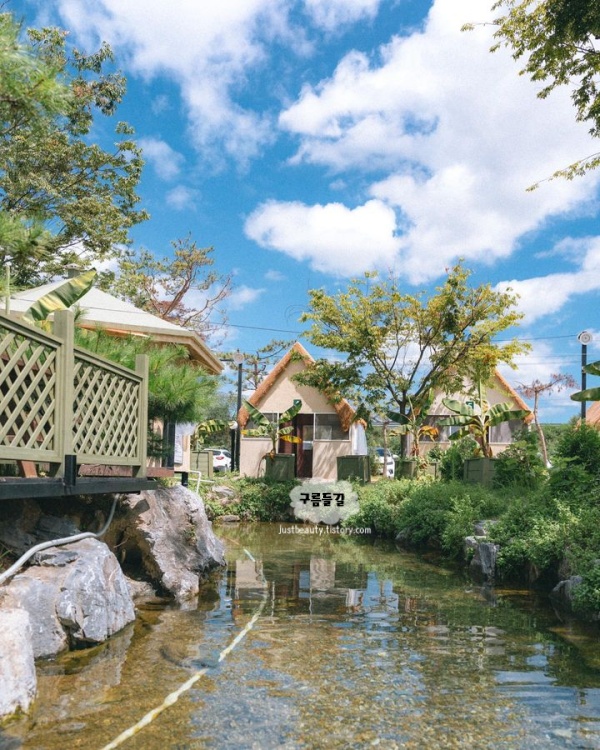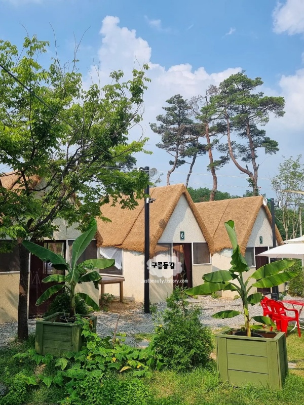 숲속에 자리 잡은 방갈로들이 마치 작은 오두막처럼 아늑한 분위기였고 자연 속에서 한껏 여유를 누릴 수 있는 청주 가볼만한곳 베스트 10곳이었어요. 방갈로 안에 자리 잡고 앉으니, 주변에서 흐르는 물소리와 바람에 스치는 나뭇잎 소리가 잔잔하게 들려왔습니다. 마치 숲이 품어주는 듯한 기분이 들었어요.