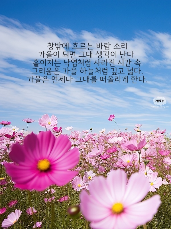 도시가 비워지는 5~8일, 어디에 있든 마음의 창을 활짝 열어보세요. 창틀 위 코스모스 같은 작은 기쁨 하나가 오늘의 당신을 지켜줄 거예요. 바람이 선선하니 물 더 챙겨 마시고, 따뜻하게 입고 나가세요.