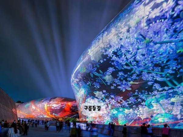 DDP는 낮에는 멋진 건물이고, 밤에는 ‘사건’이 됩니다. 벽면 전체가 움직일 때 느껴지는 압도감이 있거든요. 가까이에서 보면 고개가 계속 위로 올라가고, 조금 멀리서 보면 화면이 아니라 건물이 살아 있는 것 같은 착각이 들어요.