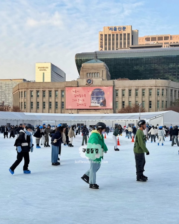 스케이트장은 실력 자랑하는 곳이 아니라, 겨울을 “몸으로 확인하는 곳”이에요. 얼음 위에 올라서는 순간 초보면 초보대로 좋습니다. 오히려 천천히 갈수록 주변을 더 많이 보게 되고, 그게 서울광장 스케이트장의 재미예요. 시청과 빌딩 불빛이 한꺼번에 들어오면, 그날은 그냥 ‘겨울을 했다’ 라고 말할 수 있어요.