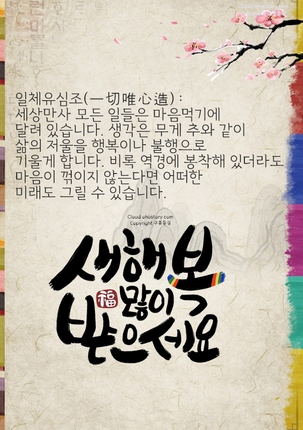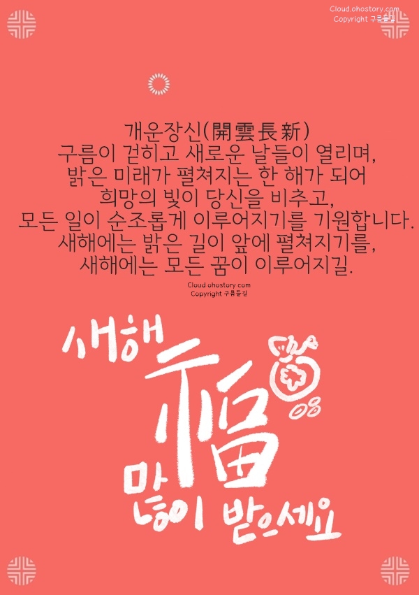 기운이 넘치고, 밝은 일들이 가득한 한 해가 되시길 바랍니다. 시작부터 좋은 기세를 타면 일도 사람도 자연스럽게 끌려오게 되어 있죠. 올해는 기세 좋게! 하고자 하는 일마다 탄력을 받는 해가 되기를 응원합니다.